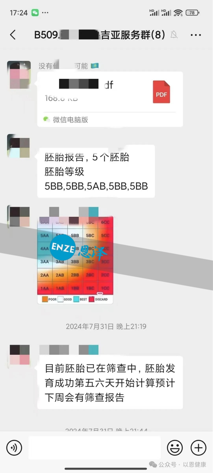 一共有五个胚胎,送筛查了四个,套餐内赠送了4个PGS。