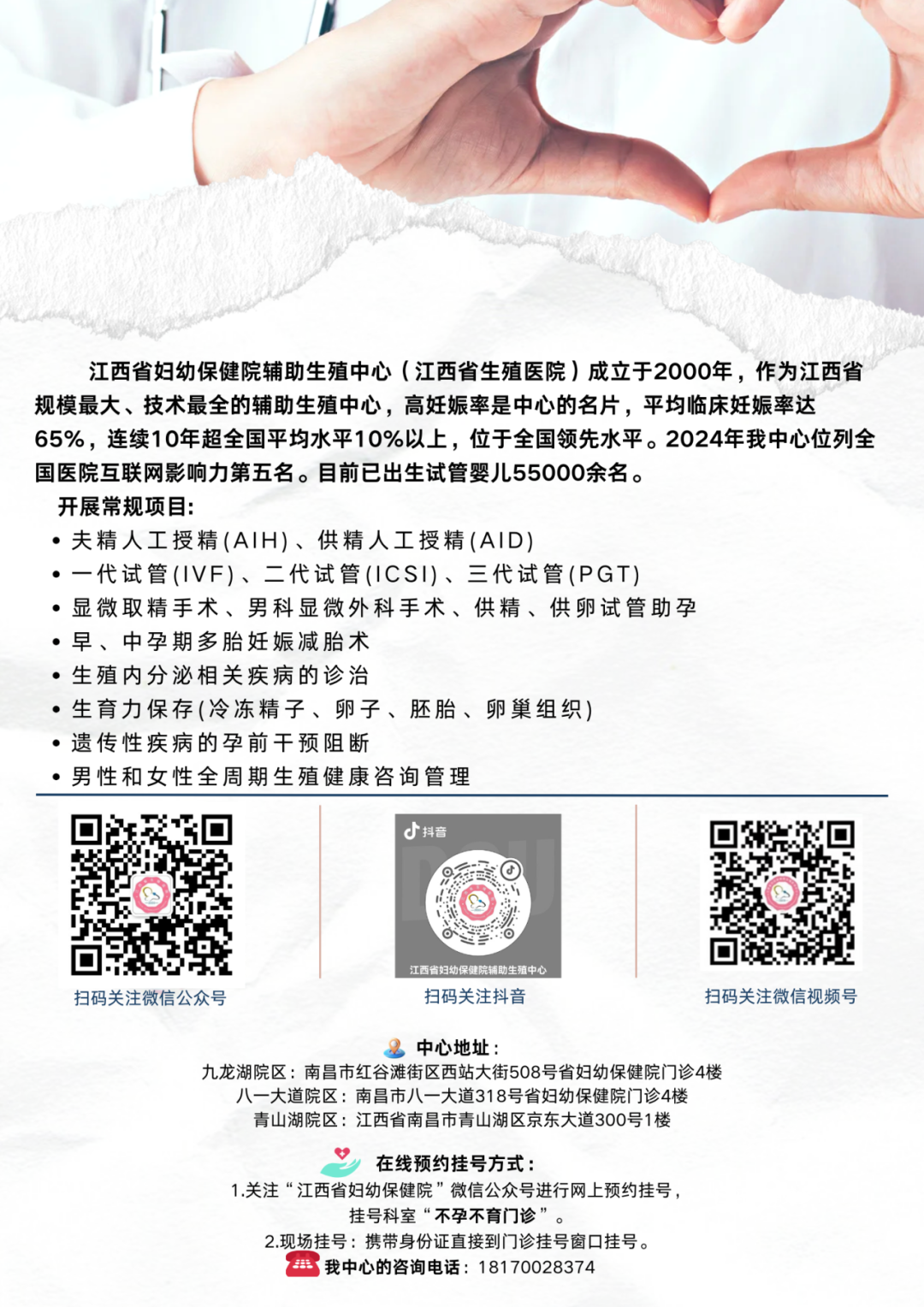 全称 “进入试管婴儿治疗周期”:您可以在完善检查,在我科建档后的首个月经期第二天,前来就诊并制定方案,这也标志着您的试管婴儿治疗正式启动。