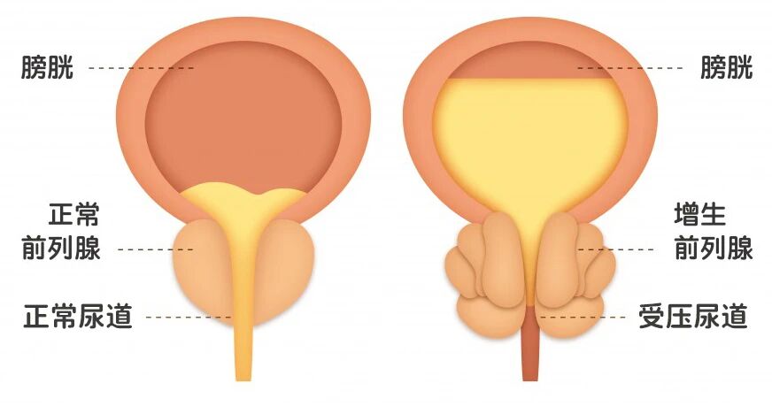 随着年龄增长,男性体内的雄激素(睾酮)与雌激素平衡被打破,双氢睾酮(DHT)的长期刺激会导致前列腺细胞增生。