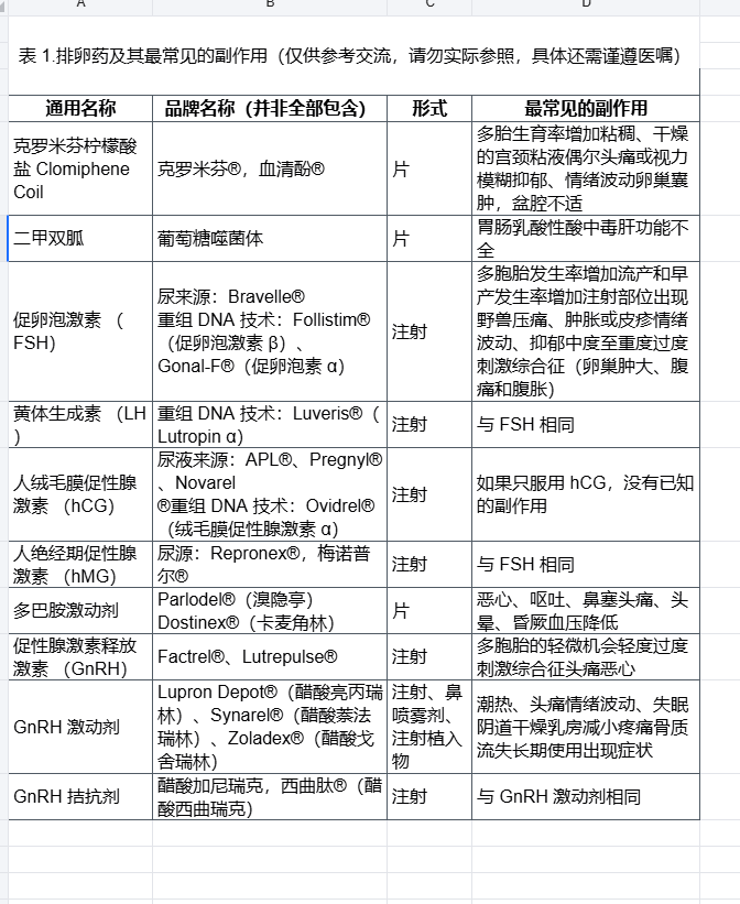药物种类:如 Ovidrel®(艾泽)、HCG等。