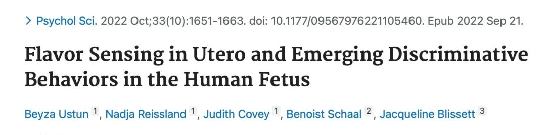 参考文献Flavor Sensing in Utero and Emerging Discriminative Behaviors in the Human Fetus. Psychol Sci. 2022 Oct;33(10):1651-1663. doi: 10.1177/09567976221105460. Epub 2022 Sep 21.