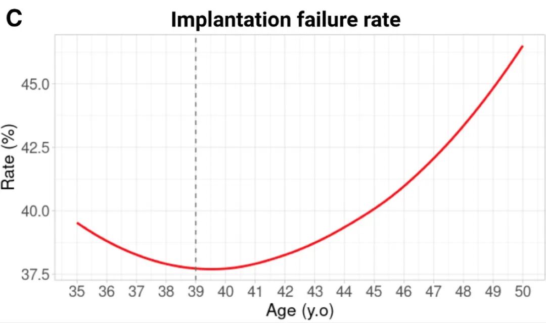 从39岁开始,胚胎着床失败的风险开始显著增加;