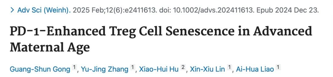 PD-1-Enhanced Treg Cell Senescence in Advanced Maternal Age. Adv Sci (Weinh). 2025 Feb;12(6):e2411613. doi: 10.1002/advs.202411613. Epub 2024 Dec 23.