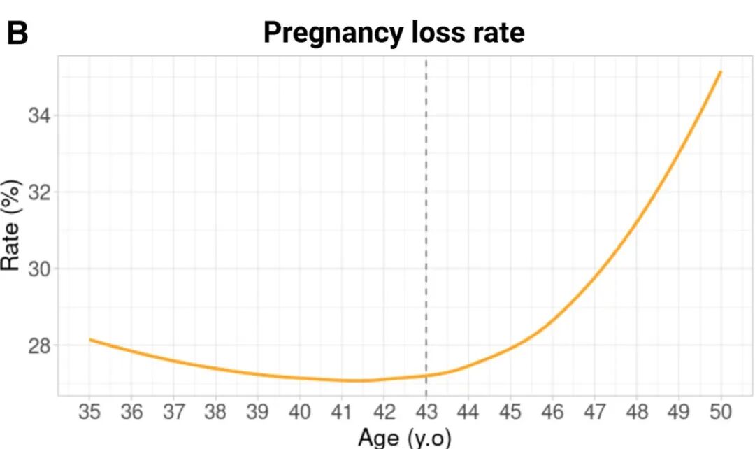 这个研究发现,女性一过40岁,活产率就开始明显下降;