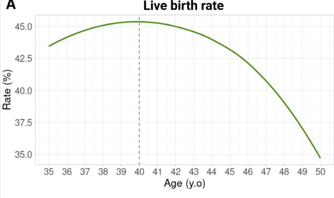 这个研究发现,女性一过40岁,活产率就开始明显下降;
