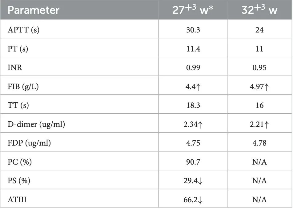 患者被诊断为抗磷脂抗体综合征,在产后第1天和第3天医生也检测了婴儿的凝血参数。