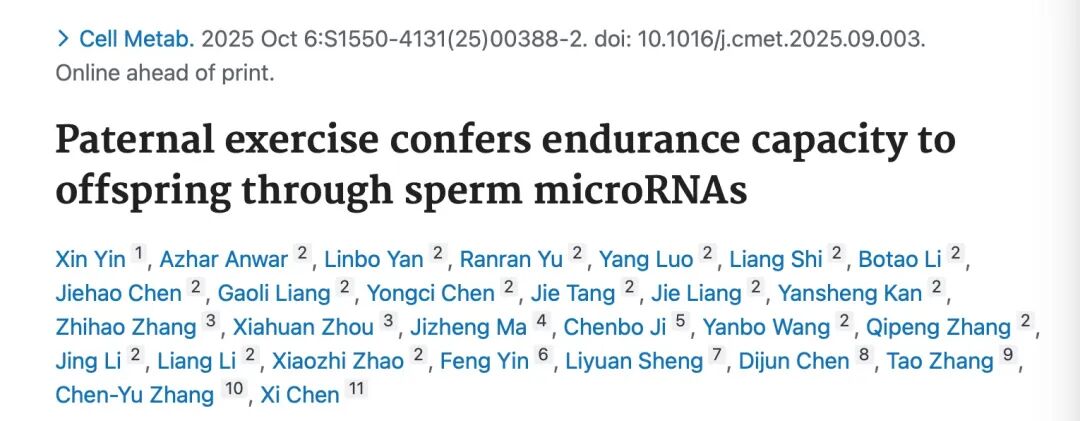 参考文献Paternal exercise confers endurance capacity to offspring through sperm microRNAs. Cell Metab. 2025 Oct 6:S1550-4131(25)00388-2. doi: 10.1016/j.cmet.2025.09.003. Epub ahead of print.