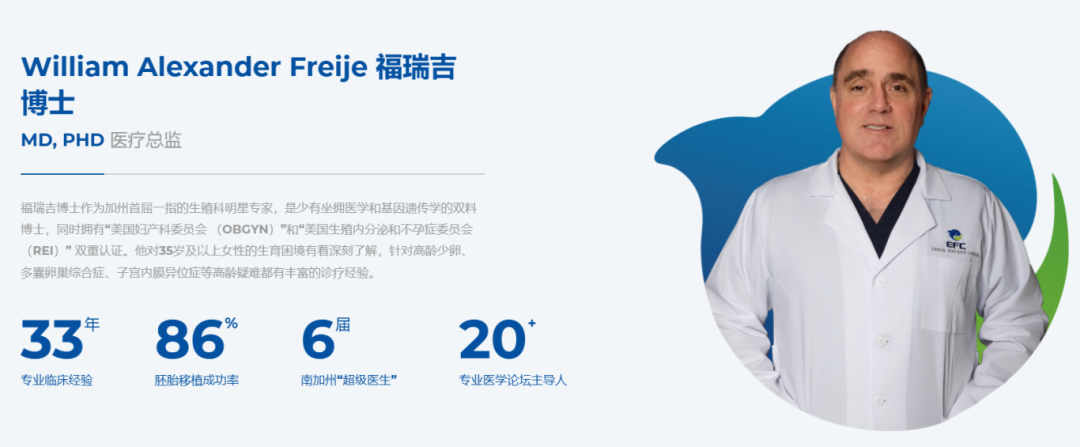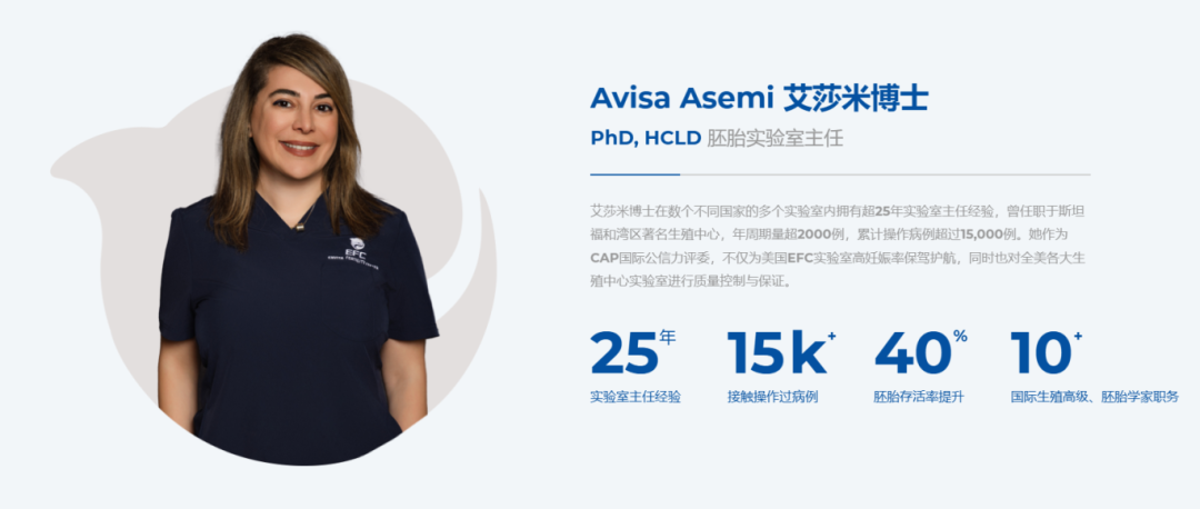 美国EFC生殖中心拥有一支由权威生殖专家、胚胎学家、护士、医疗协调员等组成的专业医疗团队。