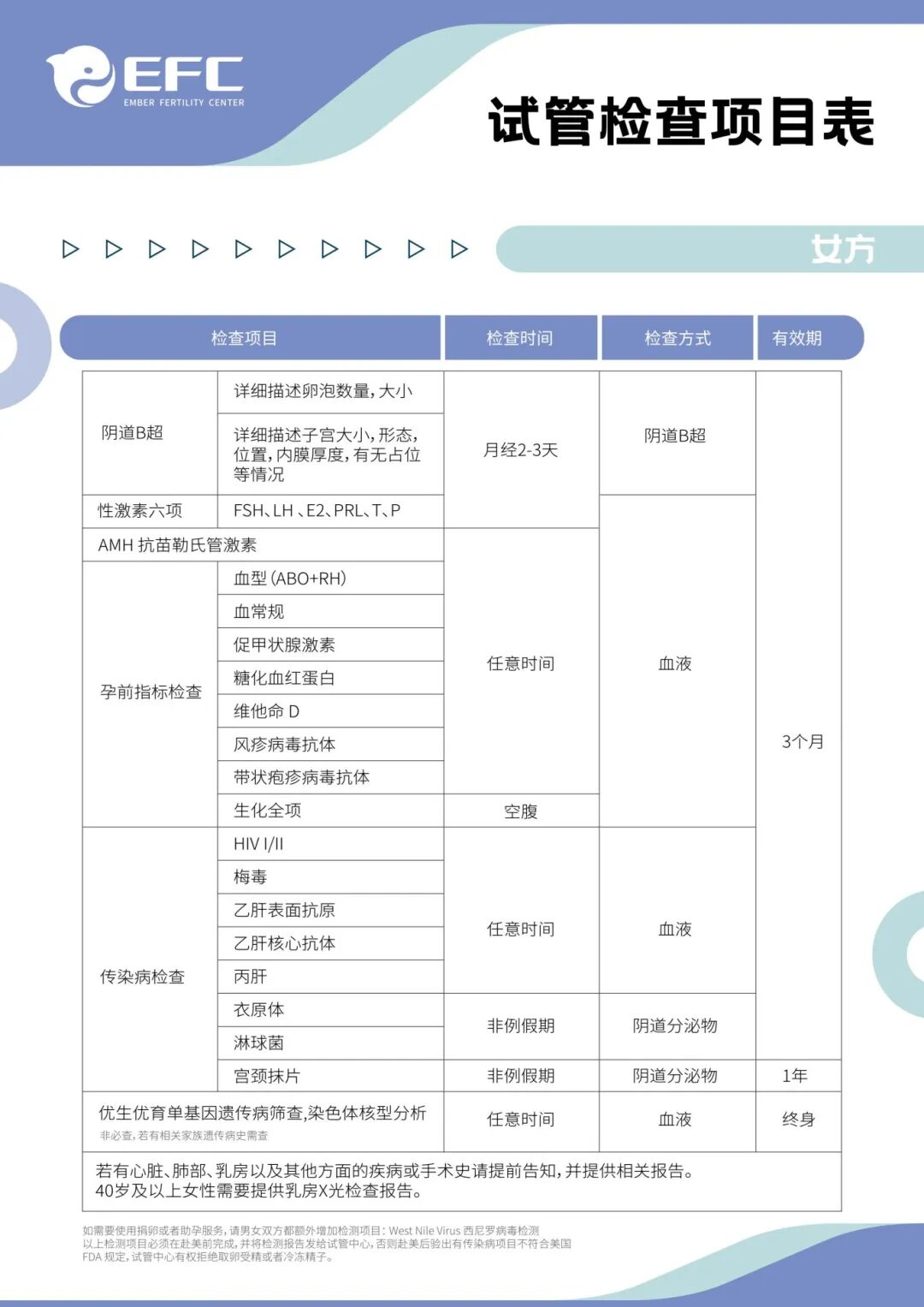 建议在计划冻卵前 3 个月完成基础检查,核心指标包括: